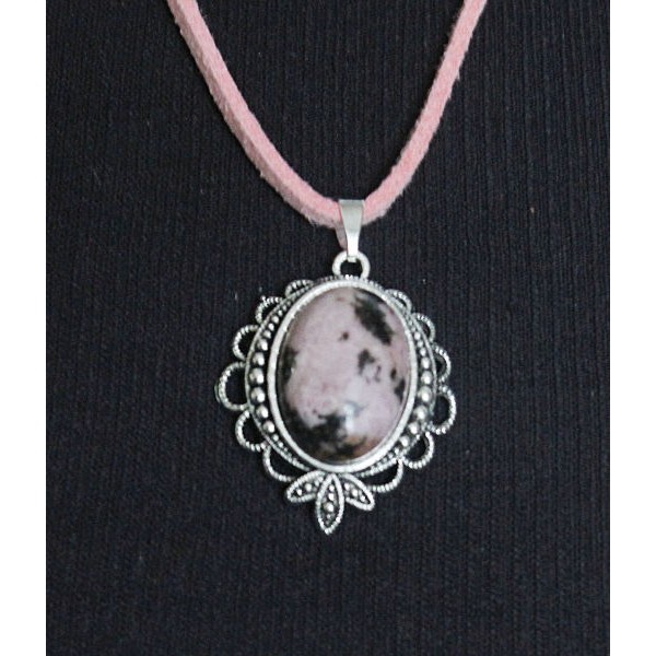 Кулон из родонита, филигрань, ручная работа, камень овал 18х13мм