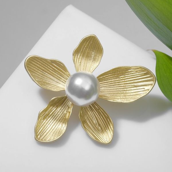 Брошь "Цветок" нежный, цвет белый, цвет золотистый
