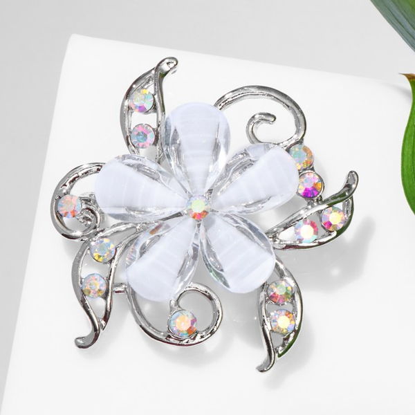 Зажим для платка "Цветок лунный", цвет белый, цвет серебристый