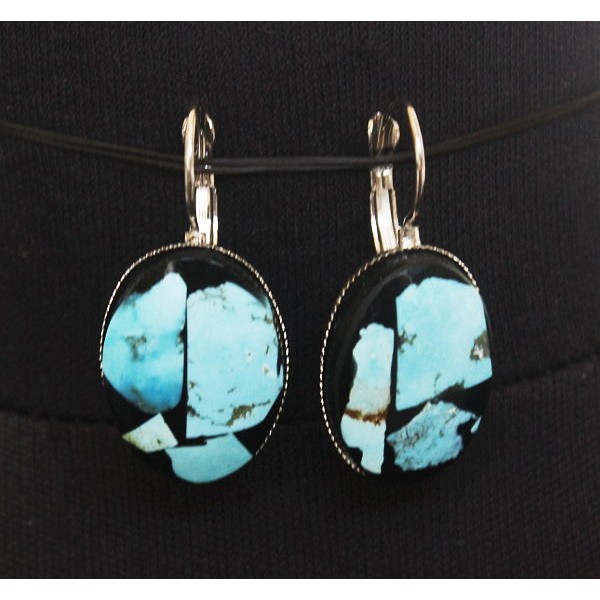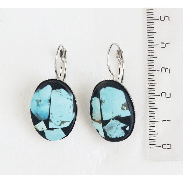 Серьги из бирюзы, кабошон мозаика, овал 18х13мм, замок петелька