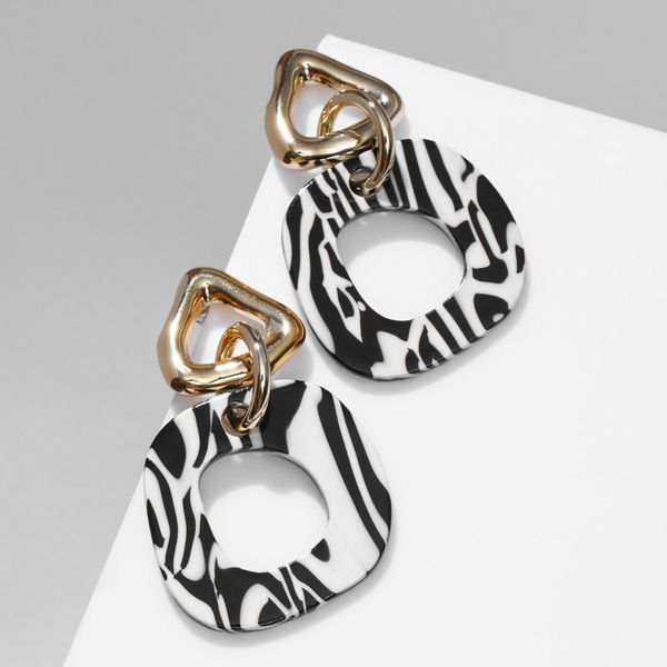 • Серьги акрил "Зебра" цепи, цвет серо-чёрный, цвет золотистый
