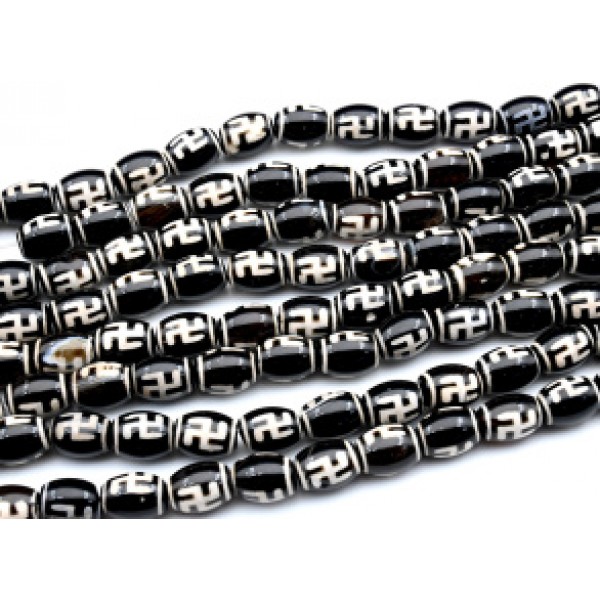 Бусины Дзи "ХоТу" из агата бочонок 10*14мм, 33см, 24 бусины.