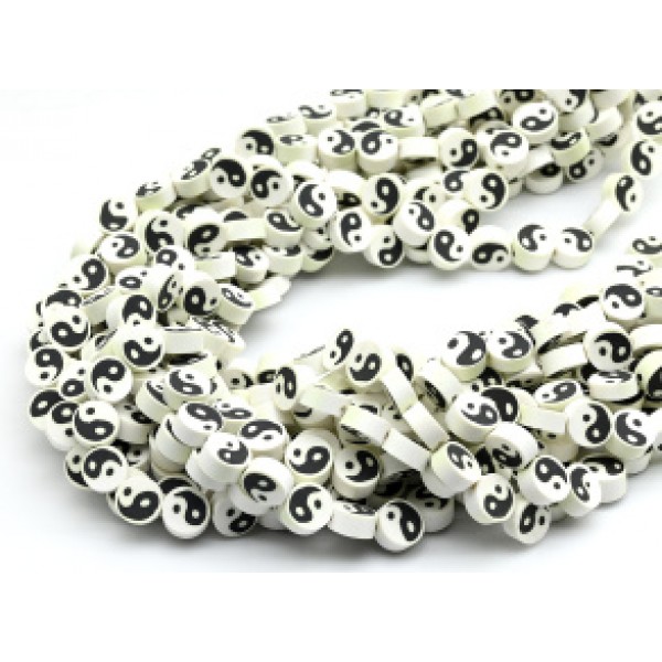 Бусины из каучука Африканские круг 10мм Инь-Ян, цвет белый, 38см, 39 бусин
