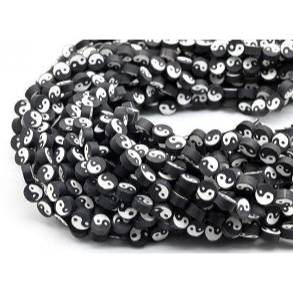 Бусины из каучука Африканские круг 10мм Инь-Ян, цвет черный, 37см, 39 бусин