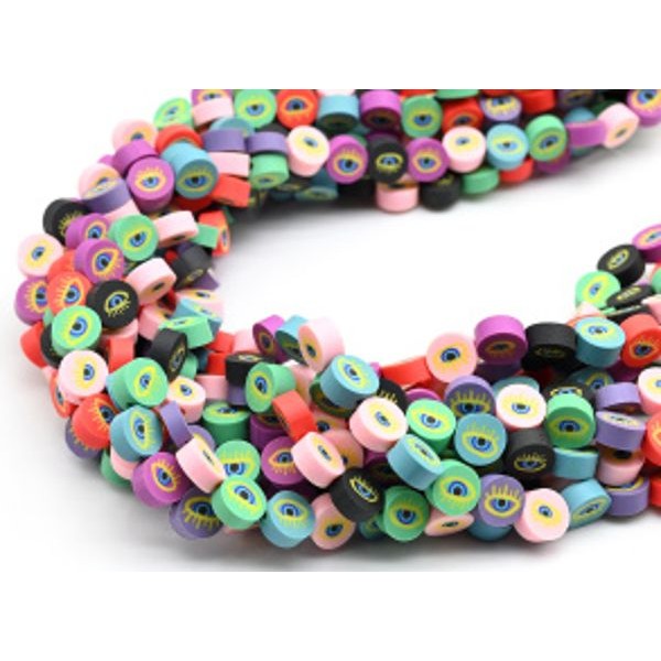 Бусины из каучука Африканские круг 10мм Око, цвет ассорти, 36см, 38 бусин