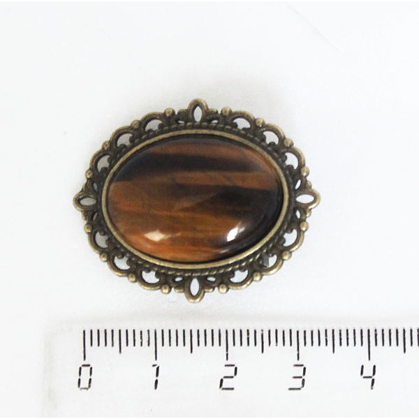 • Брошь из тигрового глаза, овал 25х18мм, оправа с узором цвет бронза