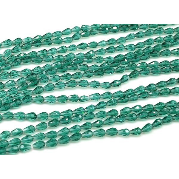 Бусины из циркона капля гр.4*6мм цвет изумрудный, 43см, 70 бусин