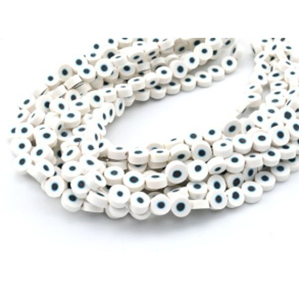 Бусины от сглаза из каучука Африканские круг 10мм, цвет белый, 35см, 37 бусин