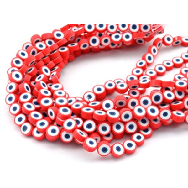 Бусины от сглаза из каучука Африканские круг 10мм, цвет красный, 35см, 38 бусин
