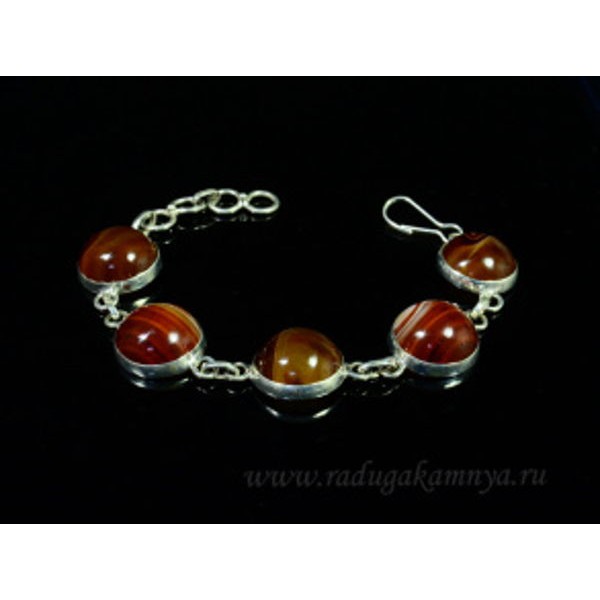 Браслет из сардоникса в посеребрении круг 16мм, 16,5см.