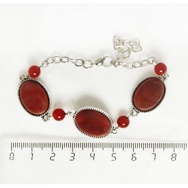 Браслет из коралла красного (иск.), овал, 18х13мм, на цепочке