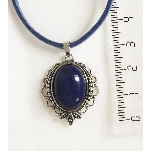 Кулон из агата синего (тонировка), овал 18х13мм..