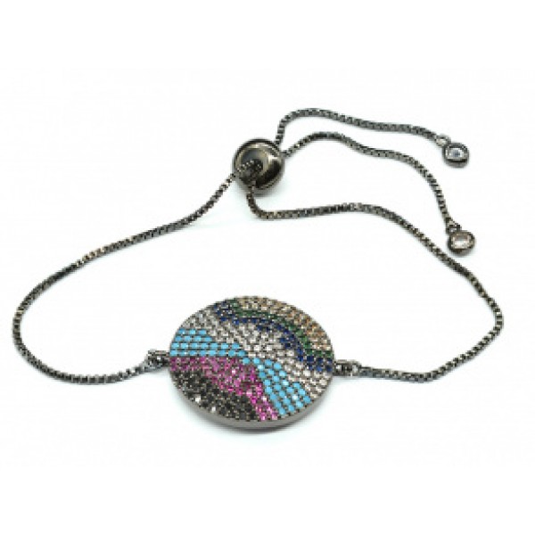 • Браслет на цепочке с фианитами "Круг" черненный.