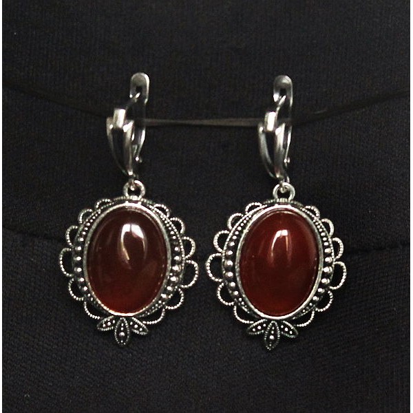 Серьги из сердолика, филигрань, ручная работа, камень овал 18х13мм, швензы посеребрение