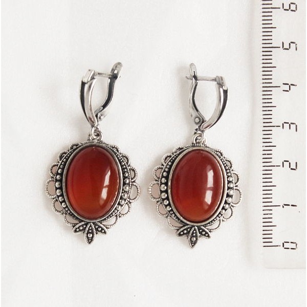 Серьги из сердолика, овал 18х13мм, оправа трилистник, швензы посеребрение