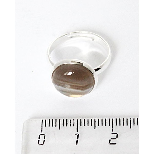 Кольцо c агатом серым, круг 12мм, безразмерное