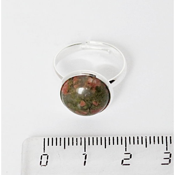 Кольцо с унакитом, круг 12мм, безразмерное