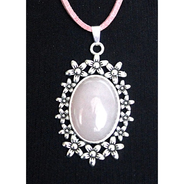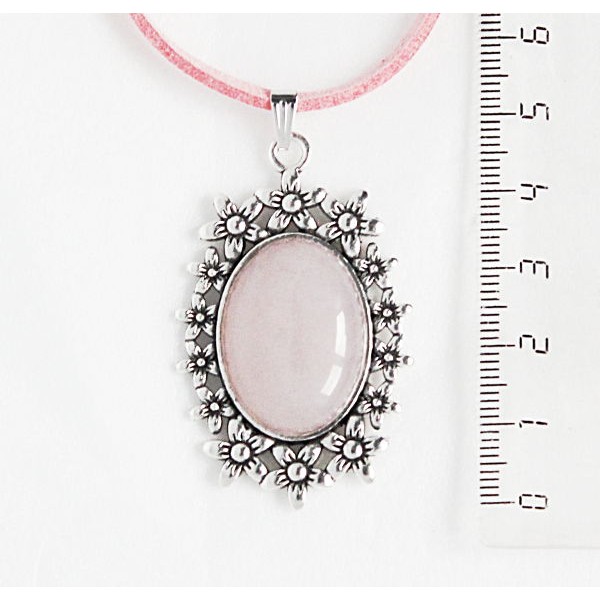 Колье-кулон из кварца розового, овал 25х18мм, оправа медальон