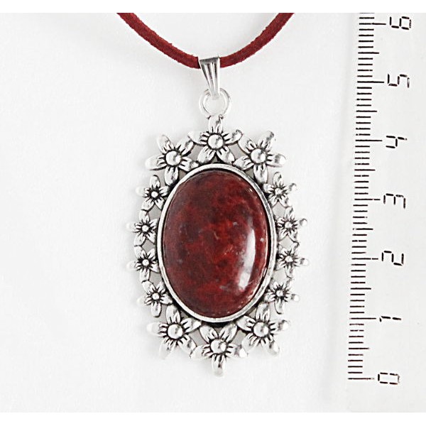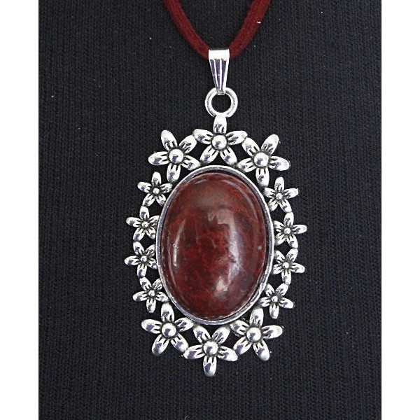 Кулон из яшмы красно-коричневой, овал 25х18мм, оправа "клумба"