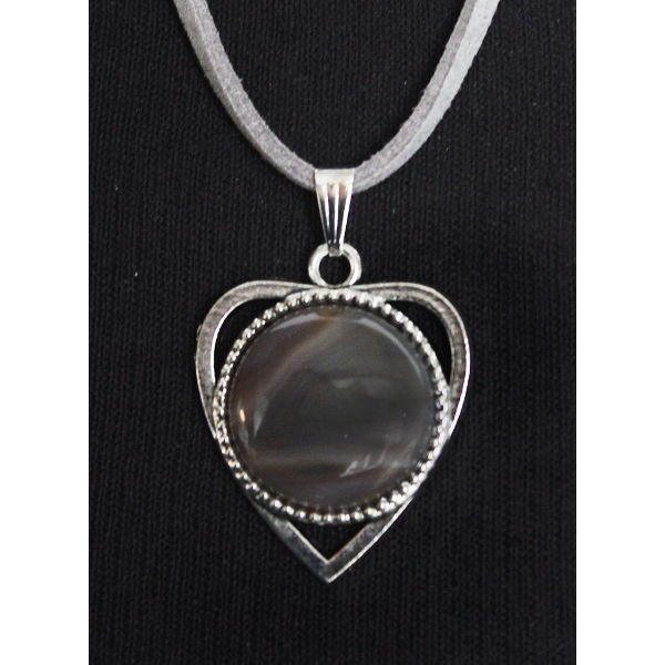Кулон из агата серого, круг 18мм, оправа "сердечко"