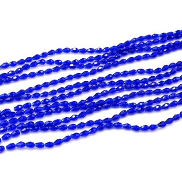 Бусины из циркона капля гр.3*5мм цвет синий яркий, 48,5см, 100 бусин
