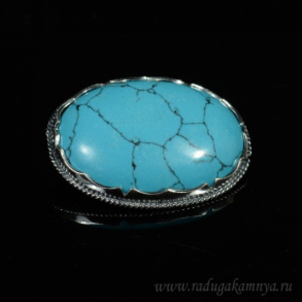 Брошь бирюза (имитация) в мельхиоре 44*34мм.