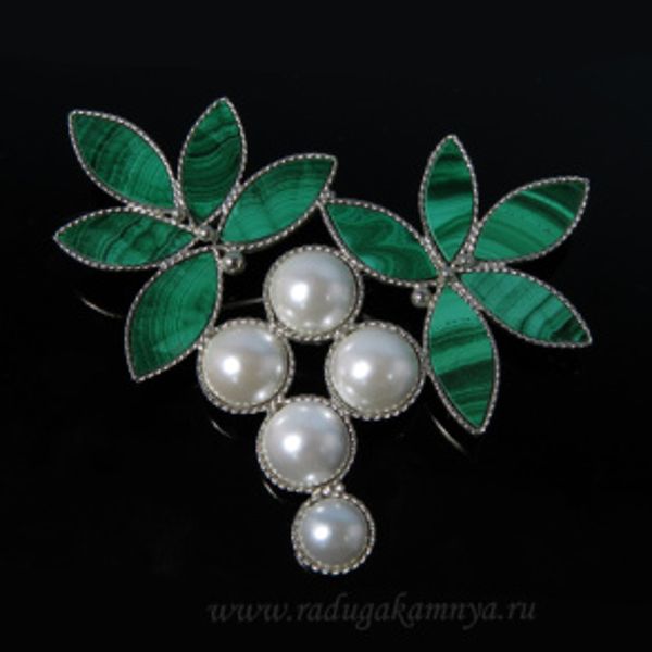 br22-00520, br22, br22-, 22-, 22-00520, брошь_из_малахита, лоза, перламутр, брошь_перламутр, виноград