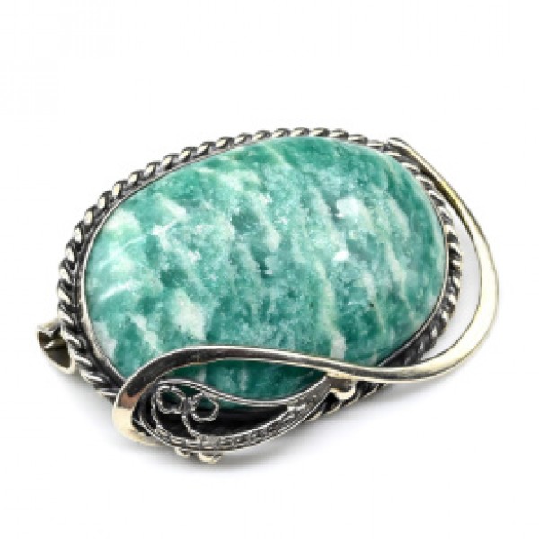 Брошь с амазонитом 39*29мм.