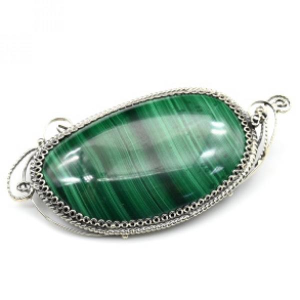 Брошь с малахитом 45*25мм.