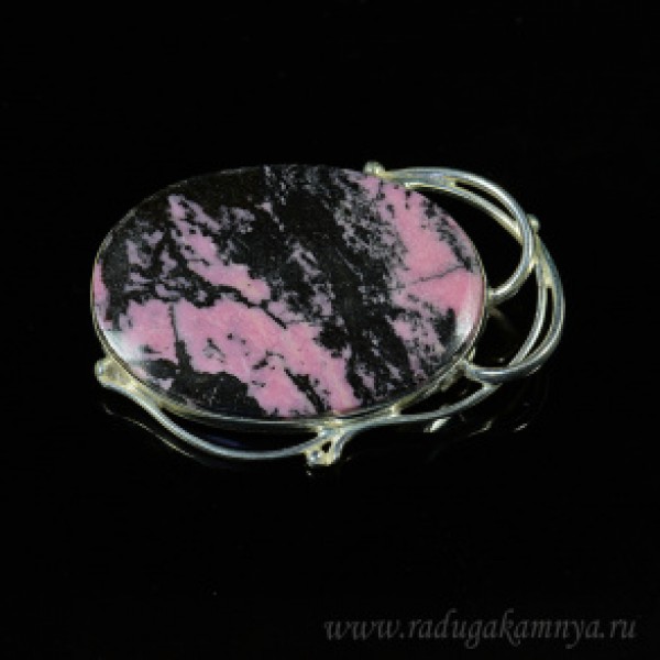 Брошь с родонитом в посеребрении " Овал " 48*33мм.