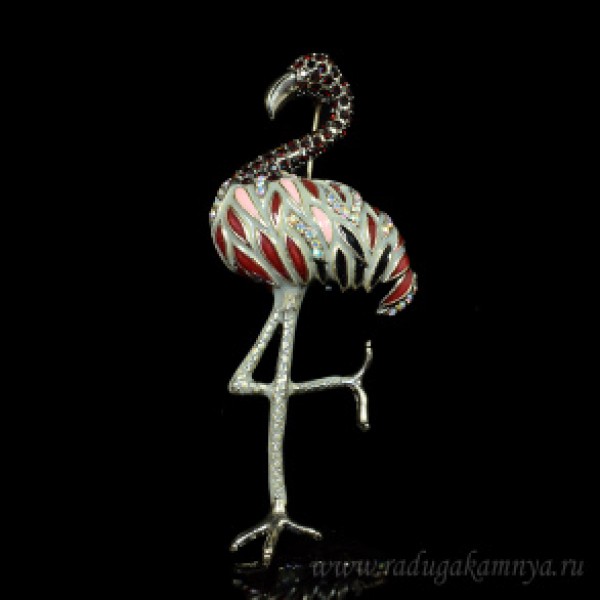 • Брошь с цирконами и эмалью "Фламинго" 34*81мм цвет красный