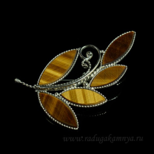 Брошь тигровый глаз "Веточка" малая, 52*30мм., м3