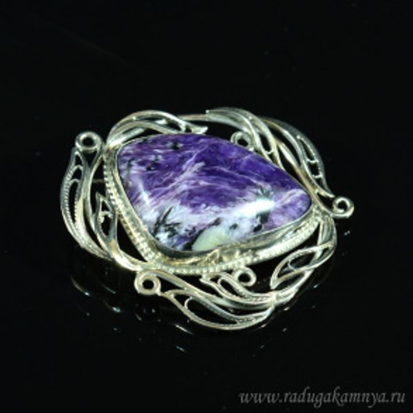 Кулон чароит (галтовка), аметист (шарик 6мм), гема..