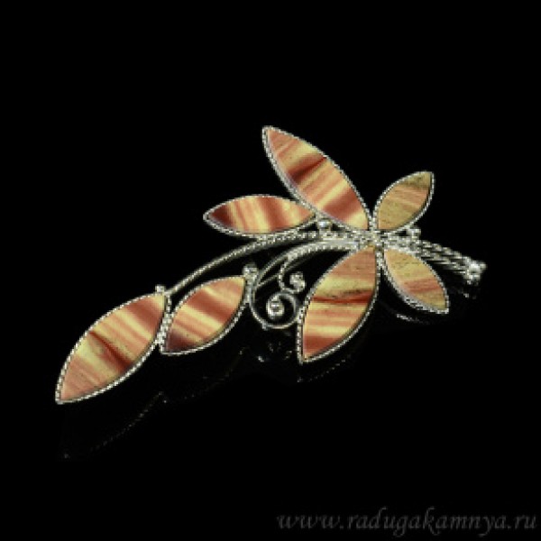 • Брошь яшма уральская "Веточка" большая, 67*37мм., 1