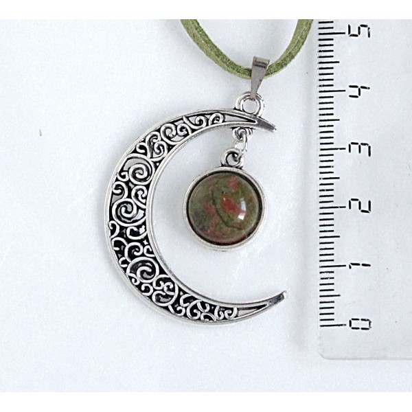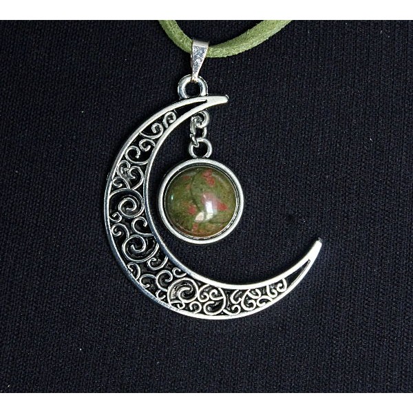Кулон из унакита "луна", круг 12мм