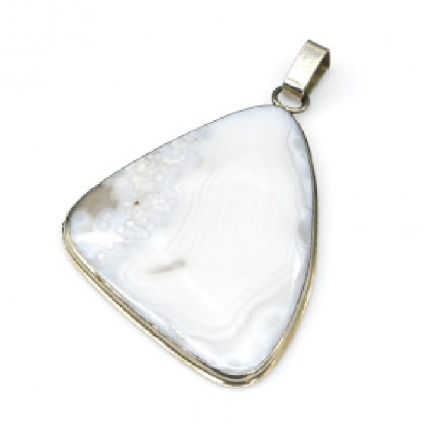 Брошь из агата белого "вензель", основа 70х2.4мм, овал 18х13мм, подвеска горный хрусталь