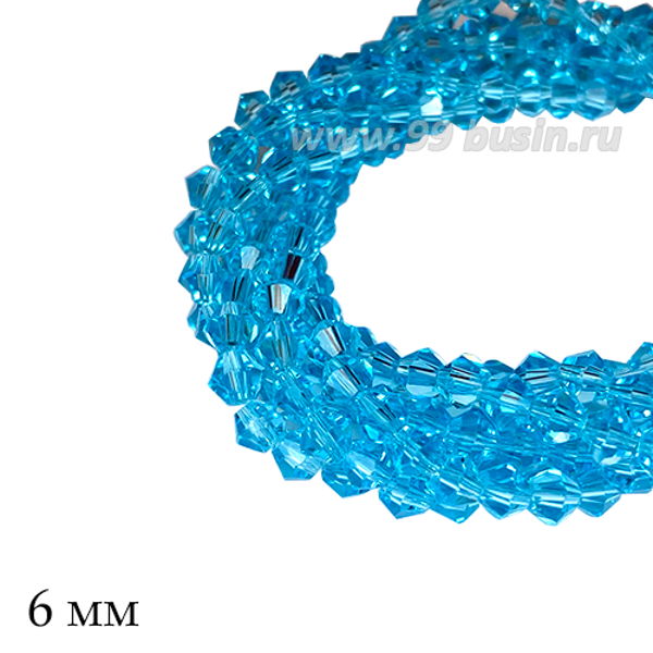 Бусины хрустальные биконус 6 мм прозрачная светлая морская волна нить ок. 29 см/49 штук