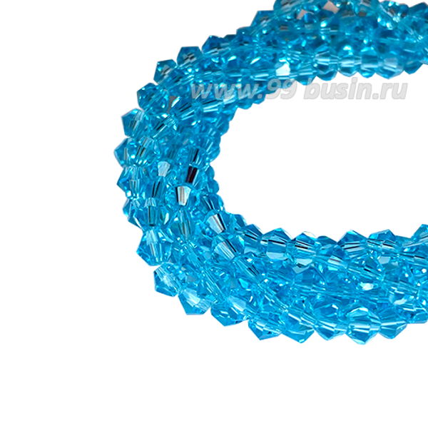 Бусина стеклянная хрустальная биконус 4 мм, яркая морская волна, длина нити около 39 см