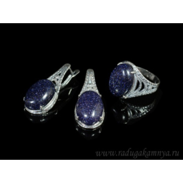 Кольцо и серьги с авантюрином синим (имитация)