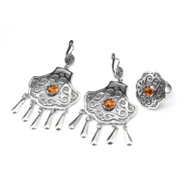 Кольцо и серьги (мельхиор) с янтарем