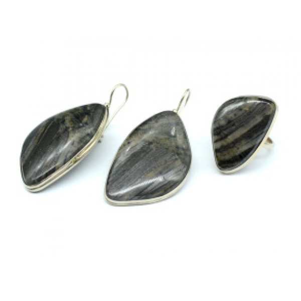Кольцо и серьги с яшмой бежевой, овал 35х22мм швен..