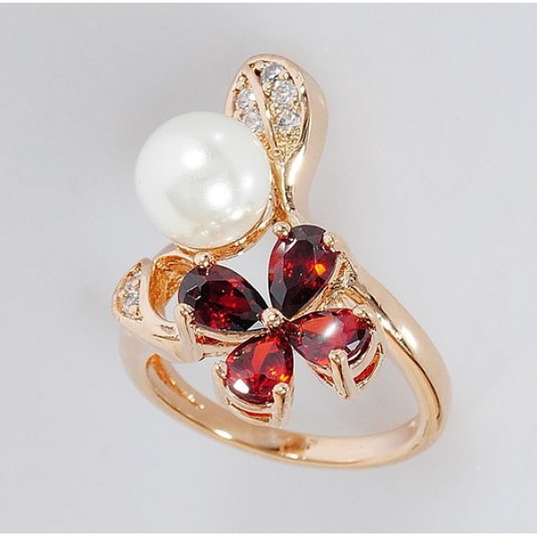 Кольцо с гранатом "жемчужный цветок"