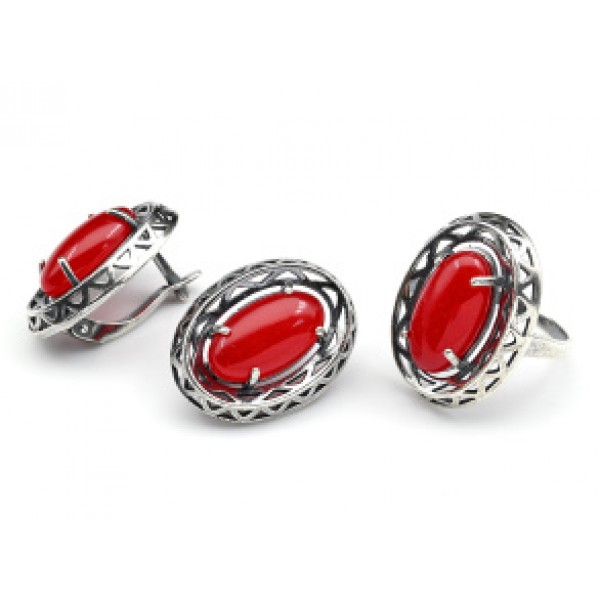 Кольцо и серьги с кварцем (имитация рубина)