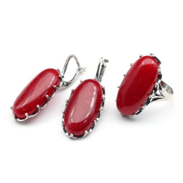 • Кольцо и серьги с кварцем (имитация рубина)