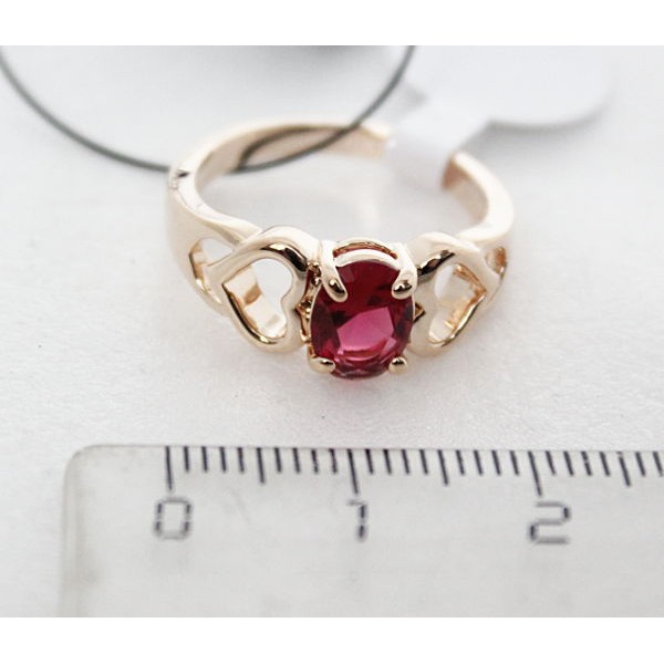 Кольцо с корундом красным (рубин синт.) "сердечки"