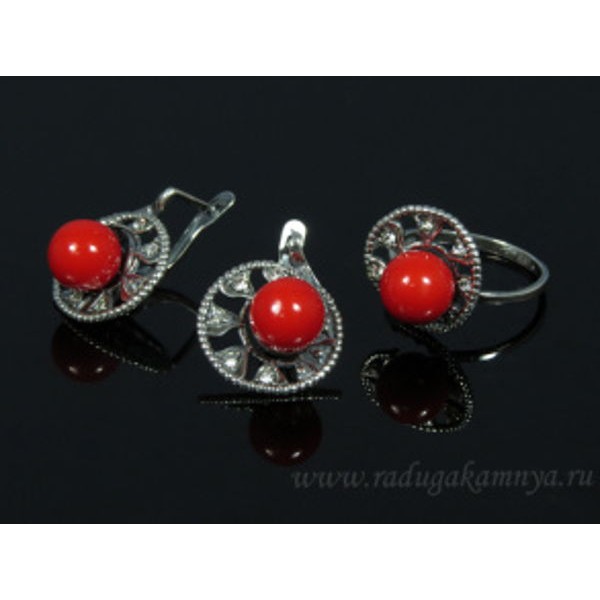 sg27-00434, sg27, sg27-, 27-, 27-00434, кольцо_и_серьги_с_кораллом, коралл, серьги_коралл