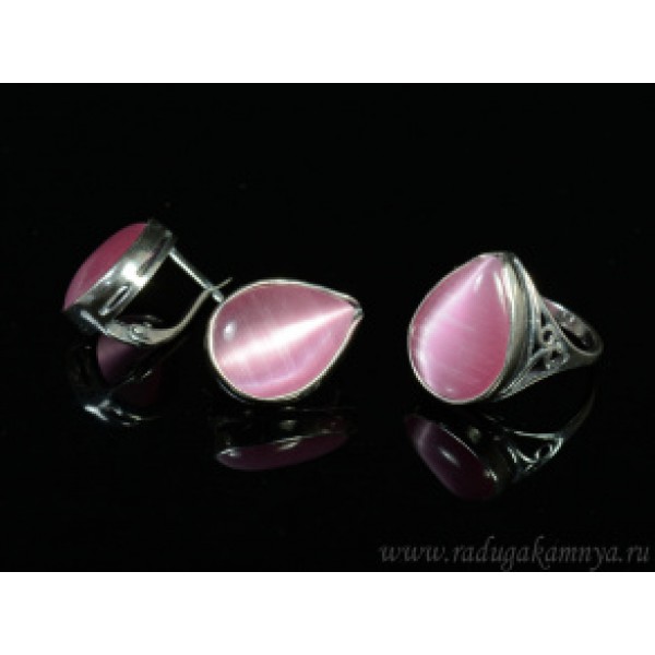 Кольцо и серьги с кошачьим глазом, цвет розовый