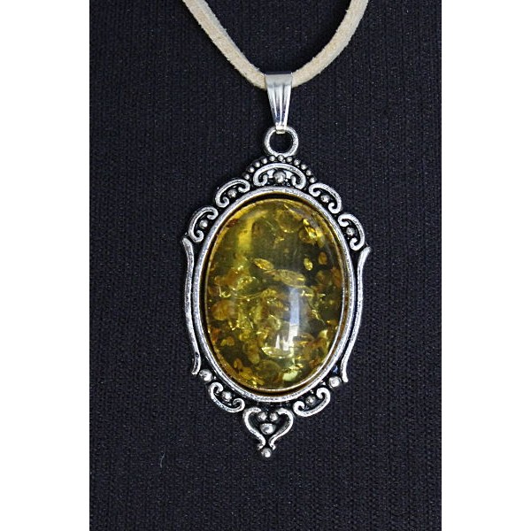 Кулон из янтаря иск., цвет зеленый, овал 25х18мм, оправа "медальон"