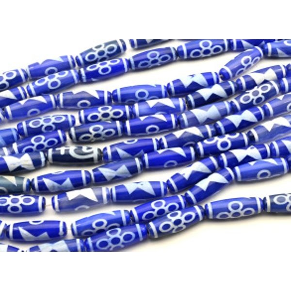 Бусины Дзи "Пять глаз с молнией" из агата бочонок 10*30мм, цвет синий, 29см, 10 бусин