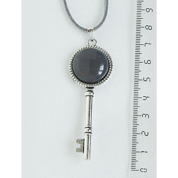 Кулон из кошачьего глаза (синт.) "ключик", круг 20мм, цвет серебристый